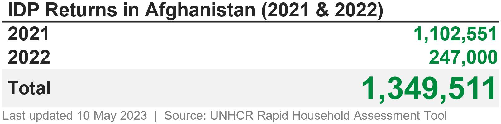 | Helmand | UNHCR, Government | 11 May 2022 | 0.4% | 1 |